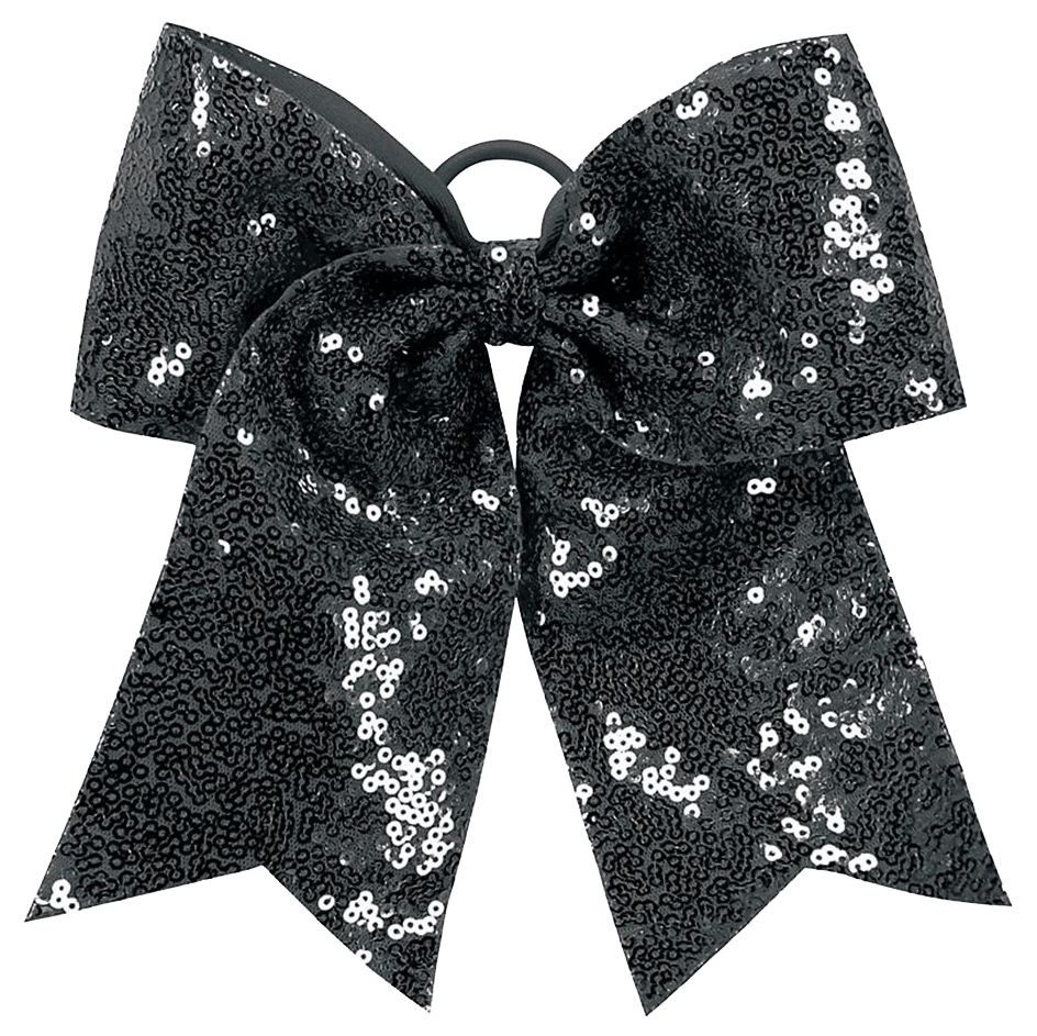 Sequin glitter bow with twill backing * 3" x 7.5" with 5.5" tail * 1" elastic hairband