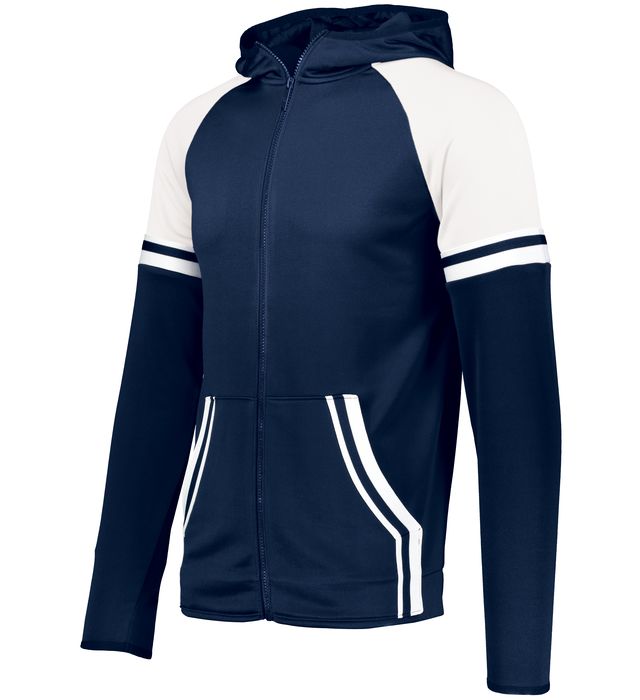* Dry-Excel(tm) 100% polyester performance terry * Wicks Moisture * Front zipper * 3-piece mesh lined hood with spandex binding * Raglan sleeves for maximum mobility * Front pockets * Spandex bound cuff
