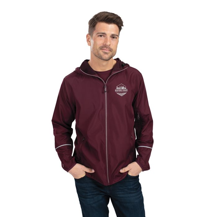 * Micron(tm) polyester is a lightweight, wind/water-resistant fabric * Woven label * Front zipper * Adjustable hood with inside concealed cord locks * Reflective trim * Back vent with adjustable closure for full decoration access * Set-in sleeves * Front zippered pockets * Zippered pocket on wearer's left sleeve * Spandex bound cuffs * Open bottom * Adjustable bottom shockcord closure