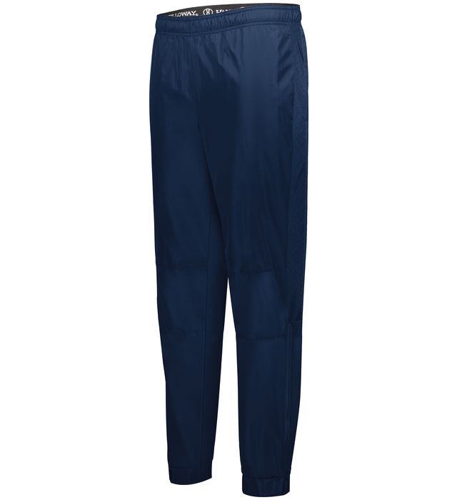* Micron(tm) polyester is a lightweight, wind/water-resistant fabric * 100% polyester micromesh lining * Embossed inserts for subtle textured pattern * Woven label * Exposed brushed elastic waistband * Side seam pockets * Back welt pocket * Tapered leg * Articulated seaming at the knees * Covered elastic cuff at leg opening * Zipper on outside lower leg