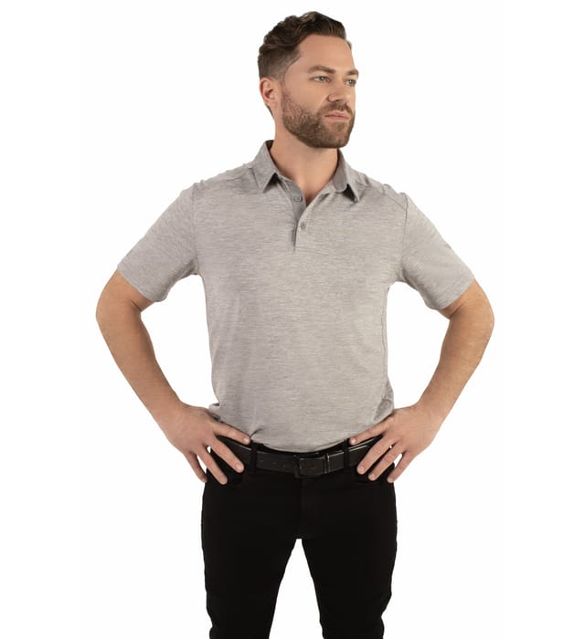 * 87% polyester/13% elastane heathered wicking knit with Coolcore(r) fabric technology * Garment protects against the sun with 50+ UPF * Wicks moisture * Tag-free label * Three-button placket * Set-in sleeves * Side vents