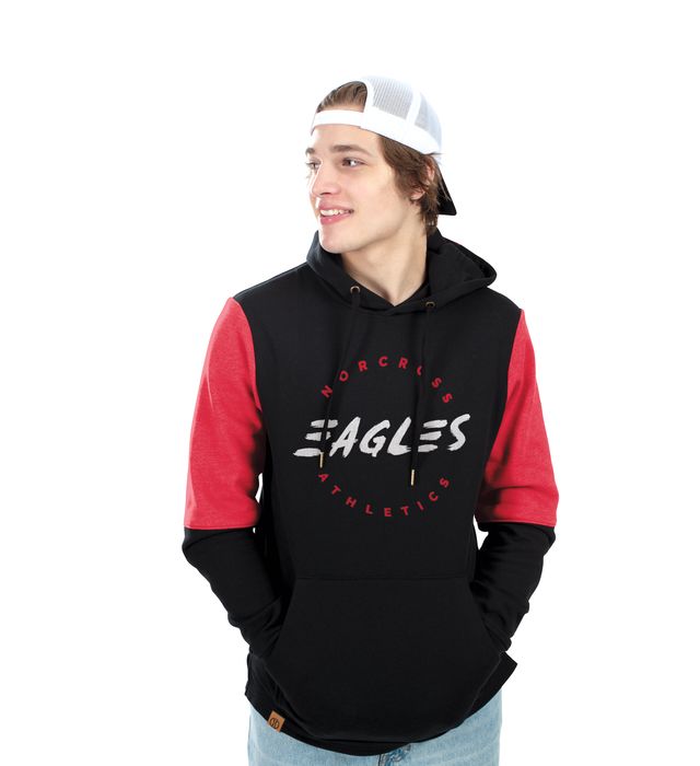 * 7.6 ounce 55% polyester/41% cotton/4% rayon, super soft fleece * Woven label * Exterior faux leather logo loop label * Jersey lined hood with metal tipped drawcord (Adult only) * Set-in sleeves * Front pouch pocket * Spandex blend rib-knit cuffs * Open bottom * Dropped tail * Side vents