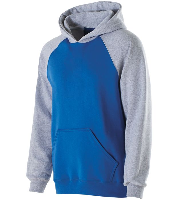 9 ounce 50% cotton/50% polyester smooth athletic fleece * Woven label * Self-lined hood with drawcord on Adult sizes only * Contrast color raglan sleeves and hood * Front pouch pocket * Rib-knit cuffs and bottom band