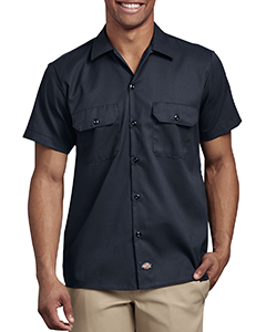 4.6 oz., 65% polyester, 35% cotton mechanical stretch twill; Enhanced moisture-wicking and stain-release finish; Improved breathability for all day comfort; Two chest pockets with flap and button closure; Pencil division in left pocket; 20-line melamine buttons; Dickies logo patch at bottom of placket; Extra-long tail; Shirt colors match dickies traditional work pants;