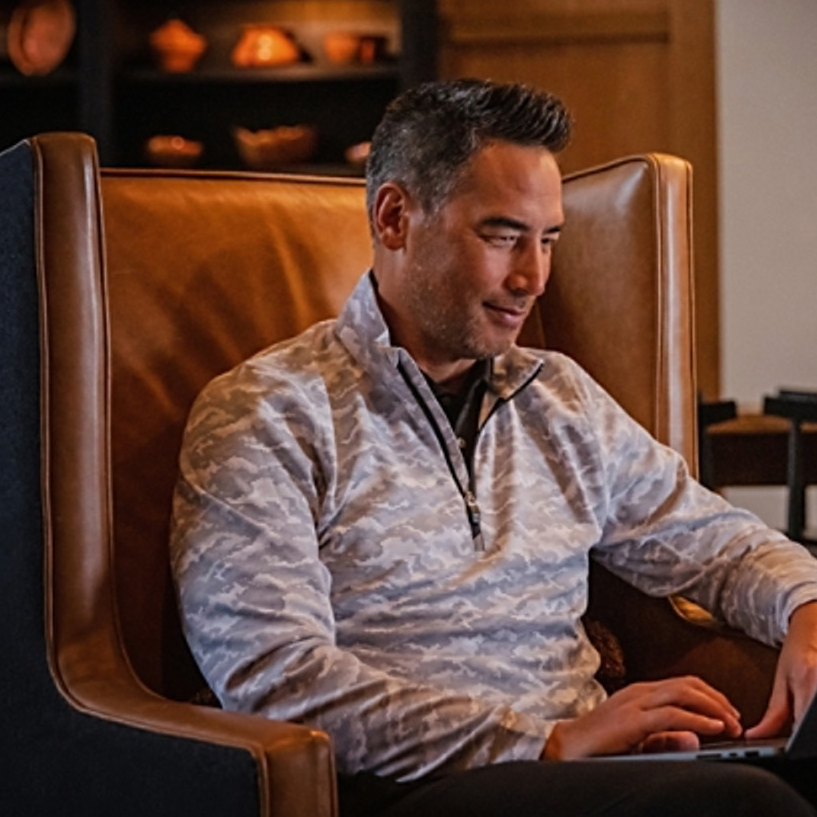 The iconic Traverse Camo Print Quarter Zip pullover is engineered for exceptional versatility, designed to be your favorite men's big and tall quarter zip long sleeve pullover for the office, golf, walking, hiking, boating, skiing, travel or WFH. Our high quality 2-ply DryTec matte finish polyester is blended with spandex in a double knit to achieve exceptional durability, stretch for comfort, and UPF 50+, all with a supremely smooth and modern look. - 90% Polyester, 10% Spandex - 50 UPF+ UV Sun Protection - Matte fabric finish - Moisture-wicking - Flat lock construction at seams for clean fit  - Reflective tape at zipper - Silver CB pennant heat transfer print at back half moon - Imported - Machine wash