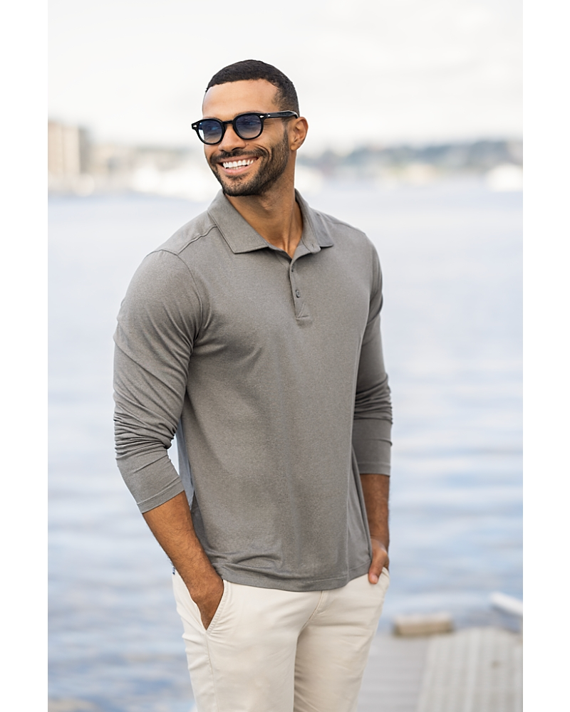The exceptionally soft, iconic and sustainable Coastline Epic Comfort Recycled Mens Long Sleeve Polo is designed to be your favorite versatile polo perfect for your active lifestyle. Crafted for comfort, move effortlessly in the lightweight, breathable double peached stretch performance jersey feeling airy and weightless on body. Made from recycled plastic bottles, ideal sun protective layer perfect for golf, tennis, WFH, travel, the office or wherever your adventure takes you. Easy to wash and wear, favorite tee shirt comfort looks great right out of the dryer. - 96% Recycled Polyester, 4% Spandex Double Peached Stretch Jersey - Made from 14 GRS Certified Post-Consumer Recycled Plastic Bottles - Recycled content certified by Global Recycled Standard - UPF 50+ UV Sun Protection - Epic Comfort Collection - Machine wash - Imported